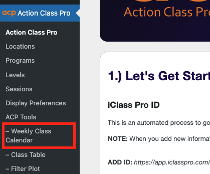 - Start By Navigating to the Weekly Class Calendar in the left hand vertical navigation.