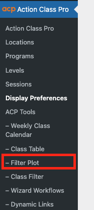 - First Navigate to Filter Plot in the Action Class Pro plugin navigation menu.