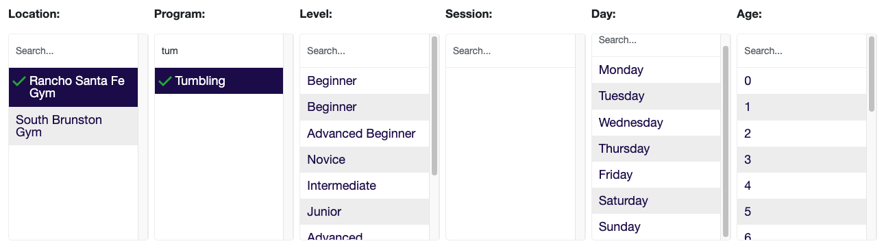 - Select your options. Here you would choose what preselections you want. It’s worth noting that you can have only 1 location selected. But you can have multiple other filters selected.