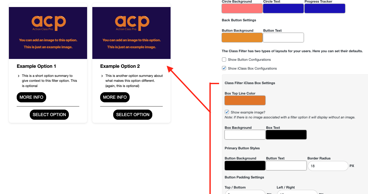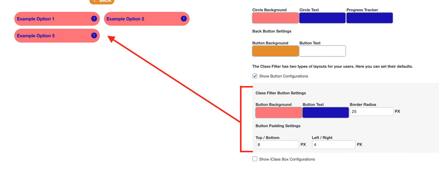 - Button Styles. If you choose to use buttons in your class filter you can choose how those appear. Is this too many options?